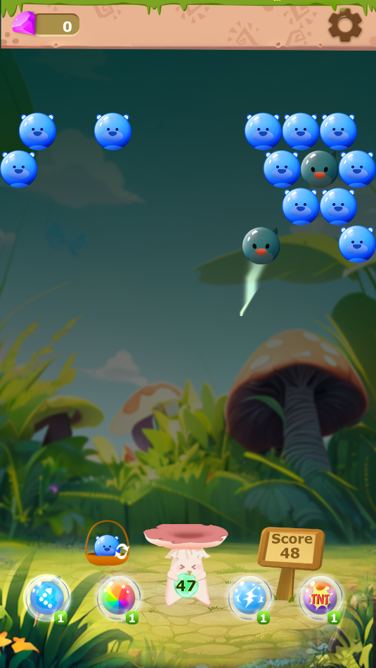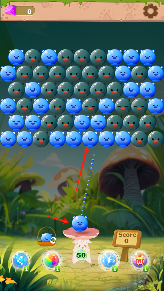 2、射击出去的泡泡球,若没有消除目标,下方会自然下落一层泡泡球。