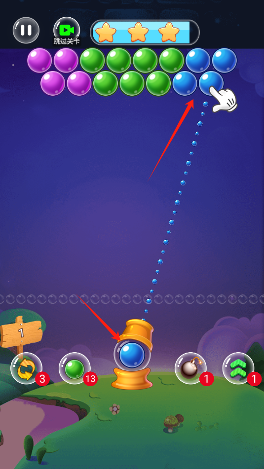 3、玩法老少皆宜,通过触摸屏幕瞄准发射泡泡,轻松上手无门槛。