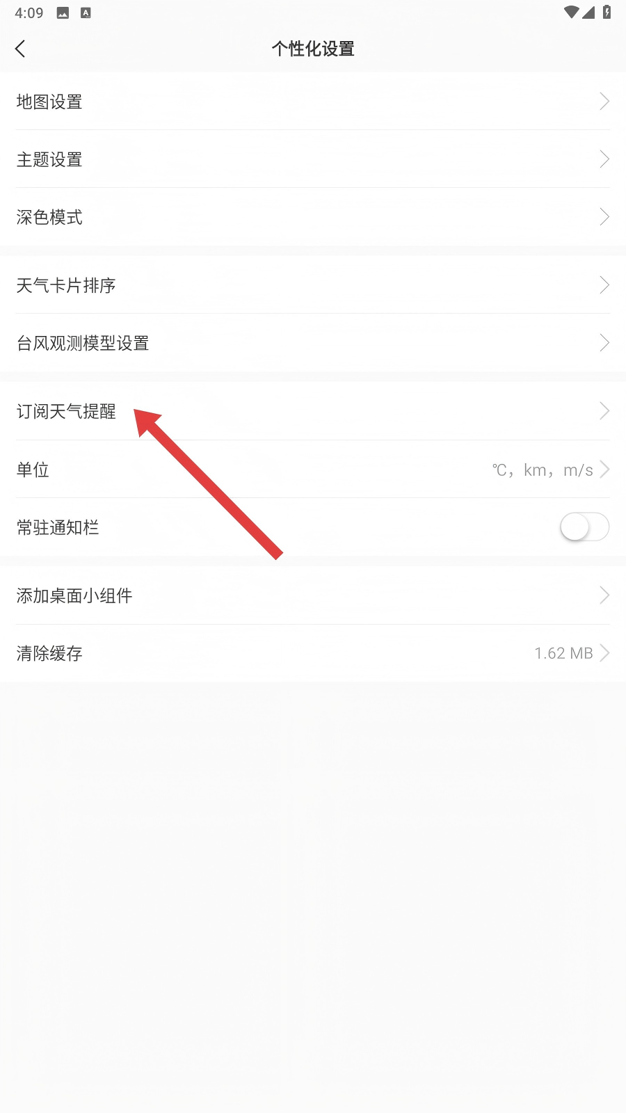 3、在个性化设置中,点击【订阅天气提醒】,进入提醒设置详情页哦。