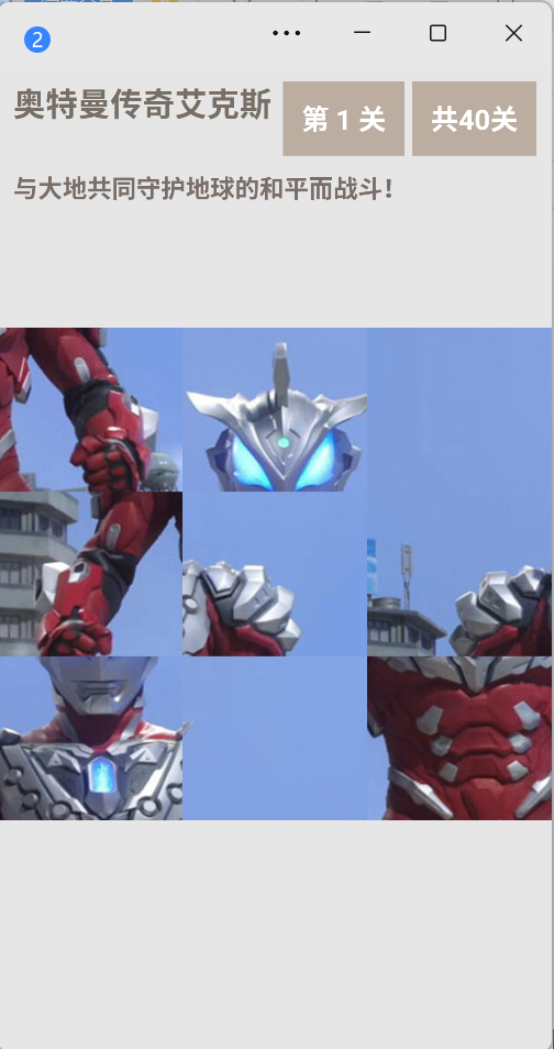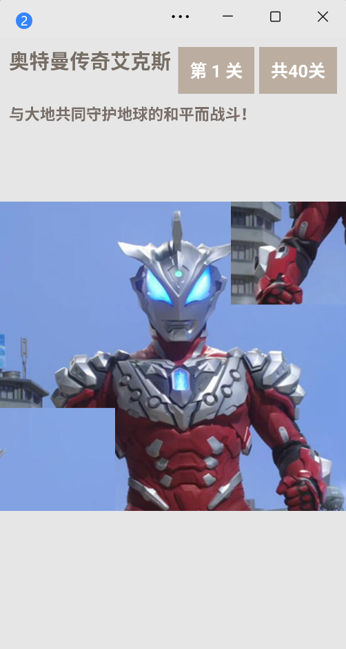1,挑战奥特曼传奇艾克斯第1关,拼好艾克斯奥特曼的图像,守护地球和平,向着40关迈进,每一步都是战斗。
