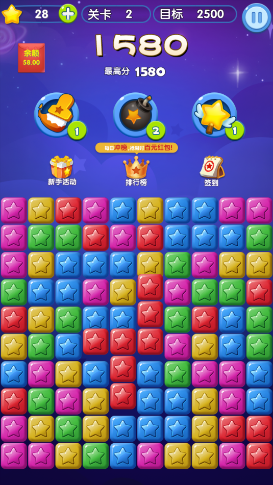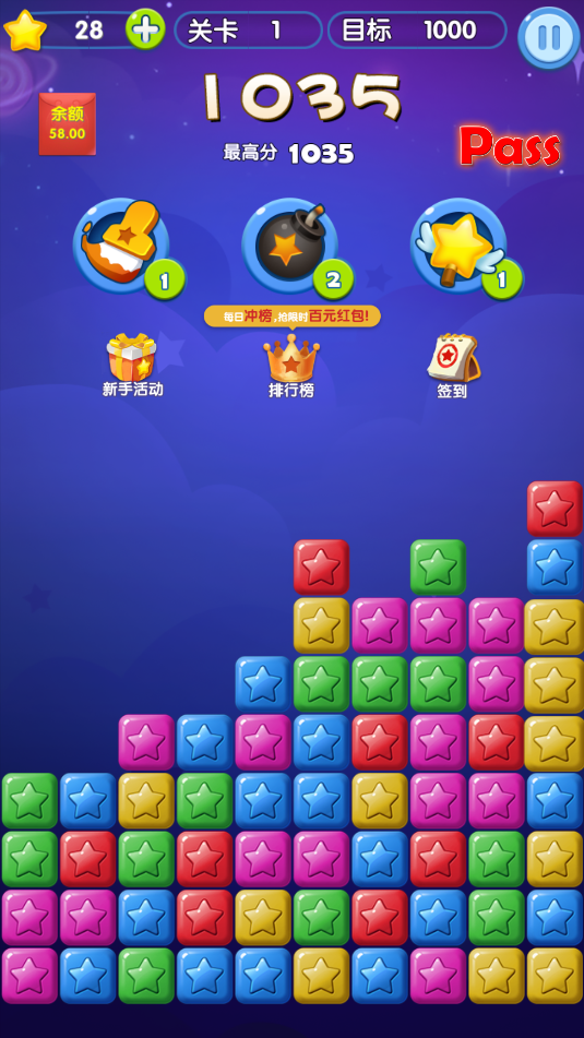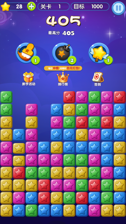 3、需消除全部可以消除的方块,即可直接进入下一关卡。