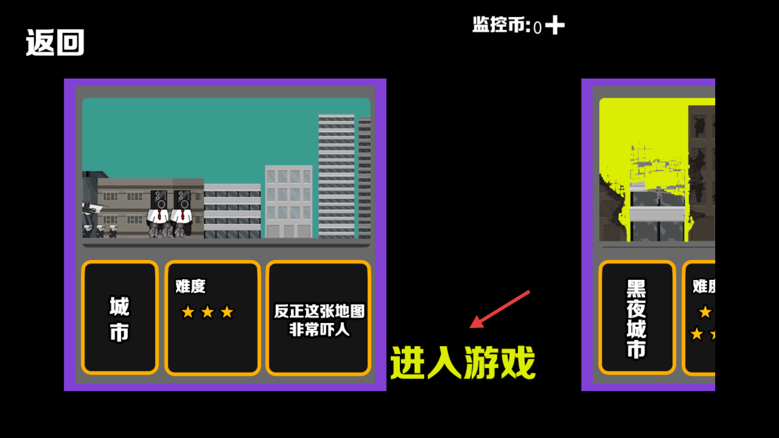 1、我们选择【城市】地图,看到难度为三星,点击【进入游戏】,开启生存冒险之旅吧。