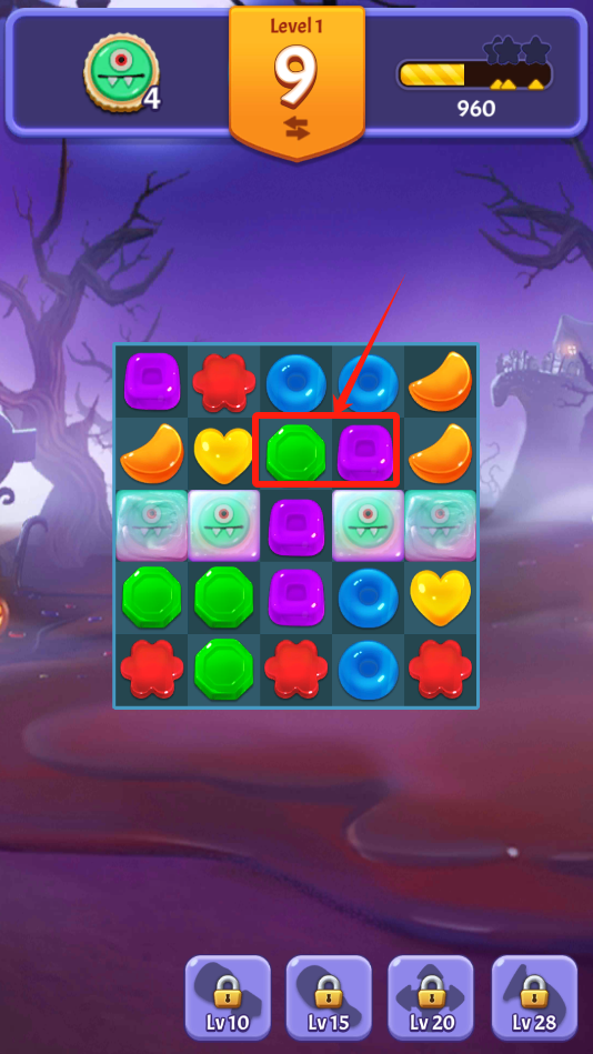 2、在剩余的移动次数内,获得2个饼干即可获胜。