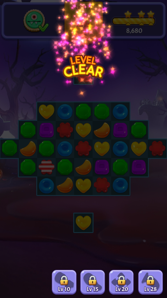 1、融合鬼怪元素,赋予饼干独特技能。达成条件,饼干技能发动,助力消除,增添别样乐趣。