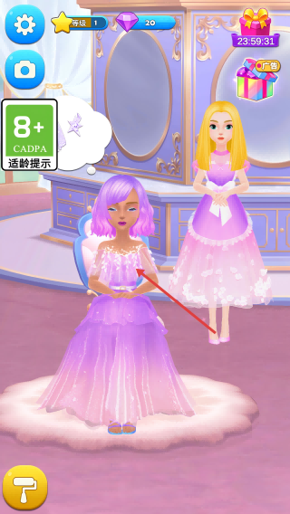 2、梦幻氛围沉浸浓:以梦幻唯美为核心风格,从美发屋场景到公主造型都充满梦幻感,搭配皇室元素,让玩家沉浸式体验精致华丽。