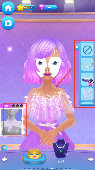 2、从右侧配饰栏选择项链,为角色佩戴,同时可查看左侧项链预览效果,优化搭配。