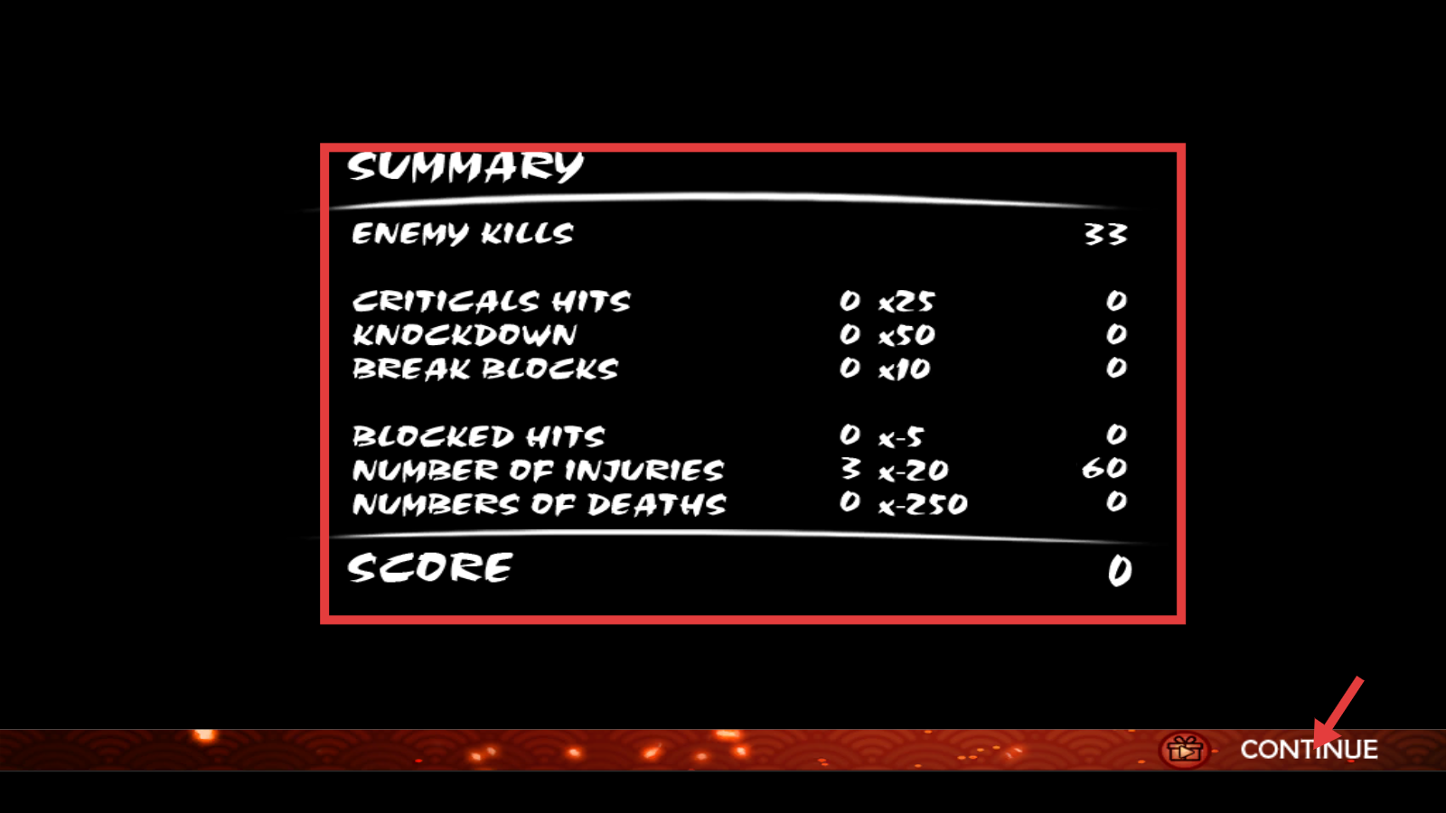 4、关卡结束后会显示战斗结算界面,展示【ENEMYKILLS】等数据,点击【CONTINUE】可继续后续流程。