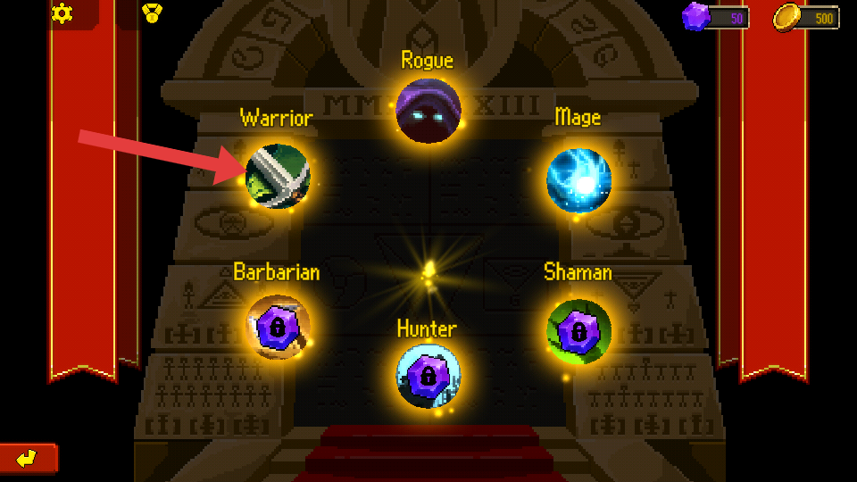 1、在角色选择界面,点击选定你想使用的角色职业,如【Warrior】(战士)等职业图标。