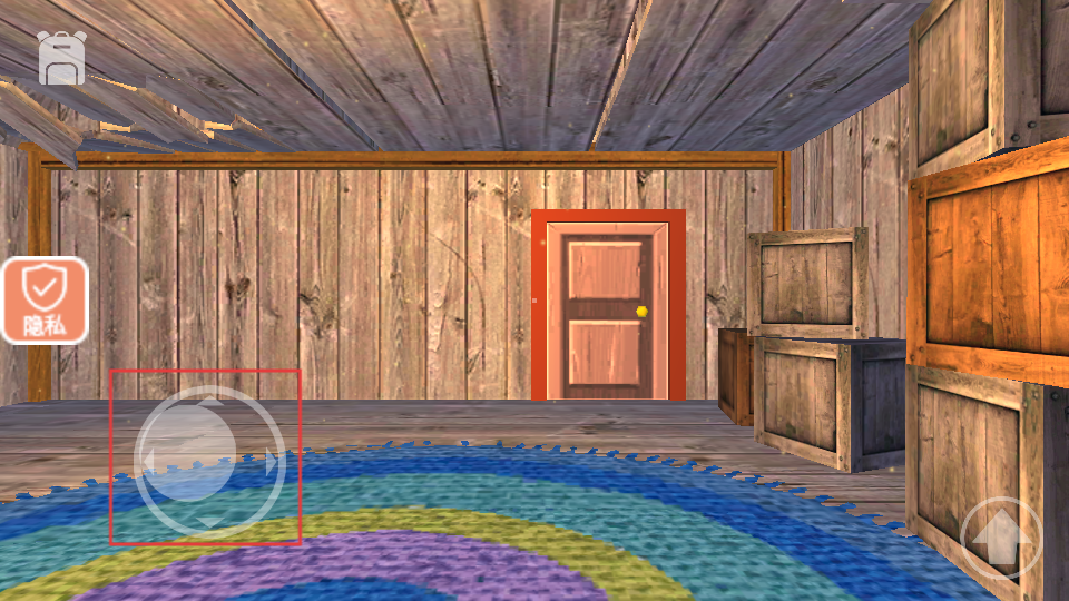 4、进入木质房屋场景,利用左侧操控盘移动,探索新场景寻找出口。