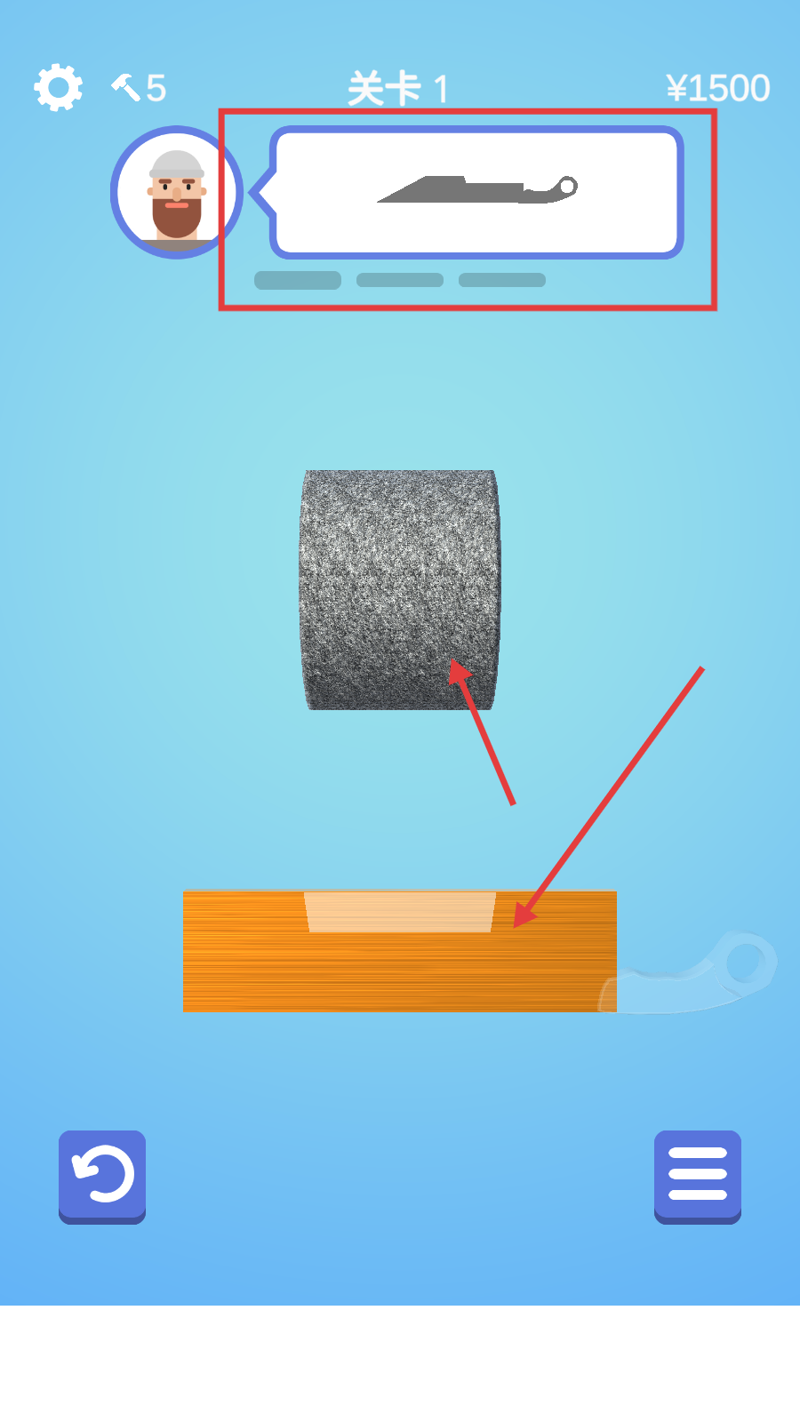 1、在关卡1中,根据上方目标形状提示,操作滚动灰色物体,使其与下方木板形状匹配。