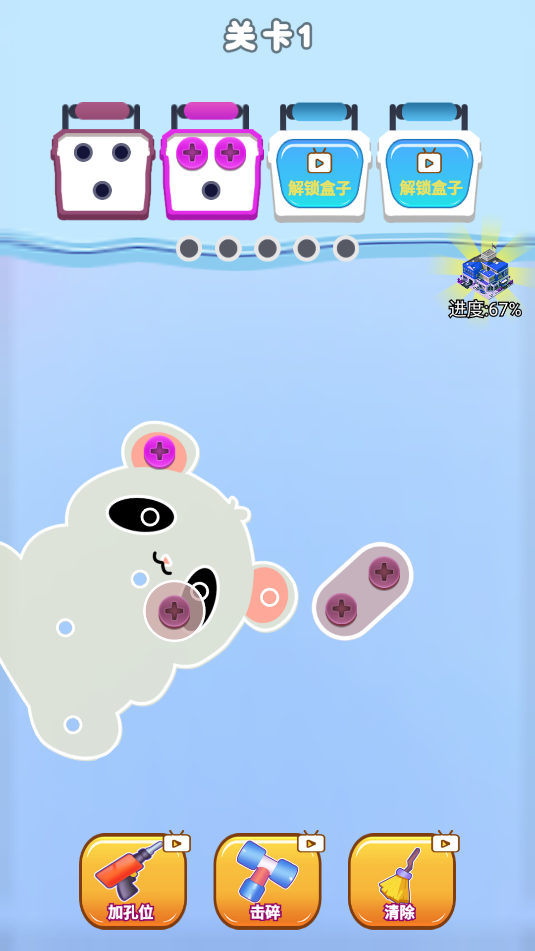 1、机械主题融合:将消除玩法与机械元素结合,以螺丝为消除对象,带来新颖体验。