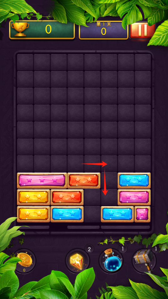 2、游戏里是移动1次方块,让方块自然下落,填满下方的一行方块来消除获得分数。
