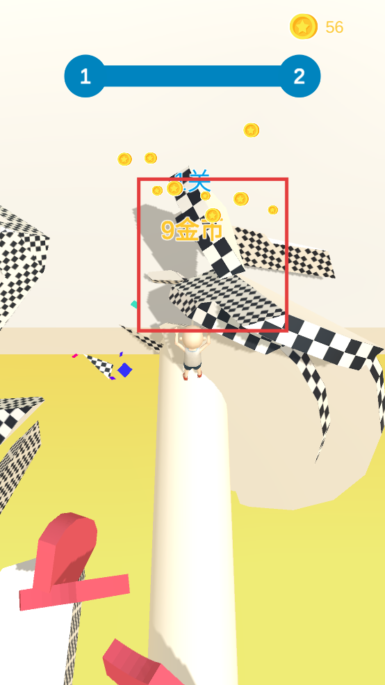 3、接近终点时,会看到带有金币的区域,冲刺过程中收集金币,到达黑白格子的终点带,完成关卡。