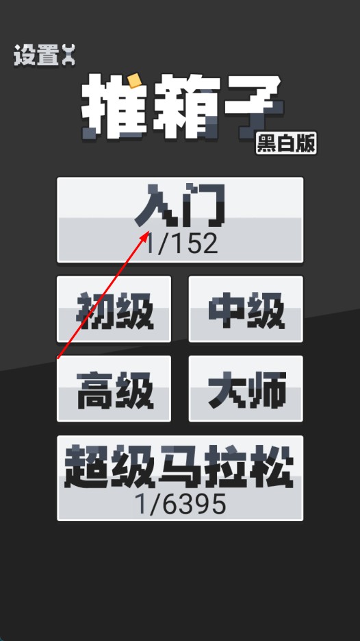 1、进入《推箱子黑白》游戏,选择【入门】难度,开启关卡挑战。