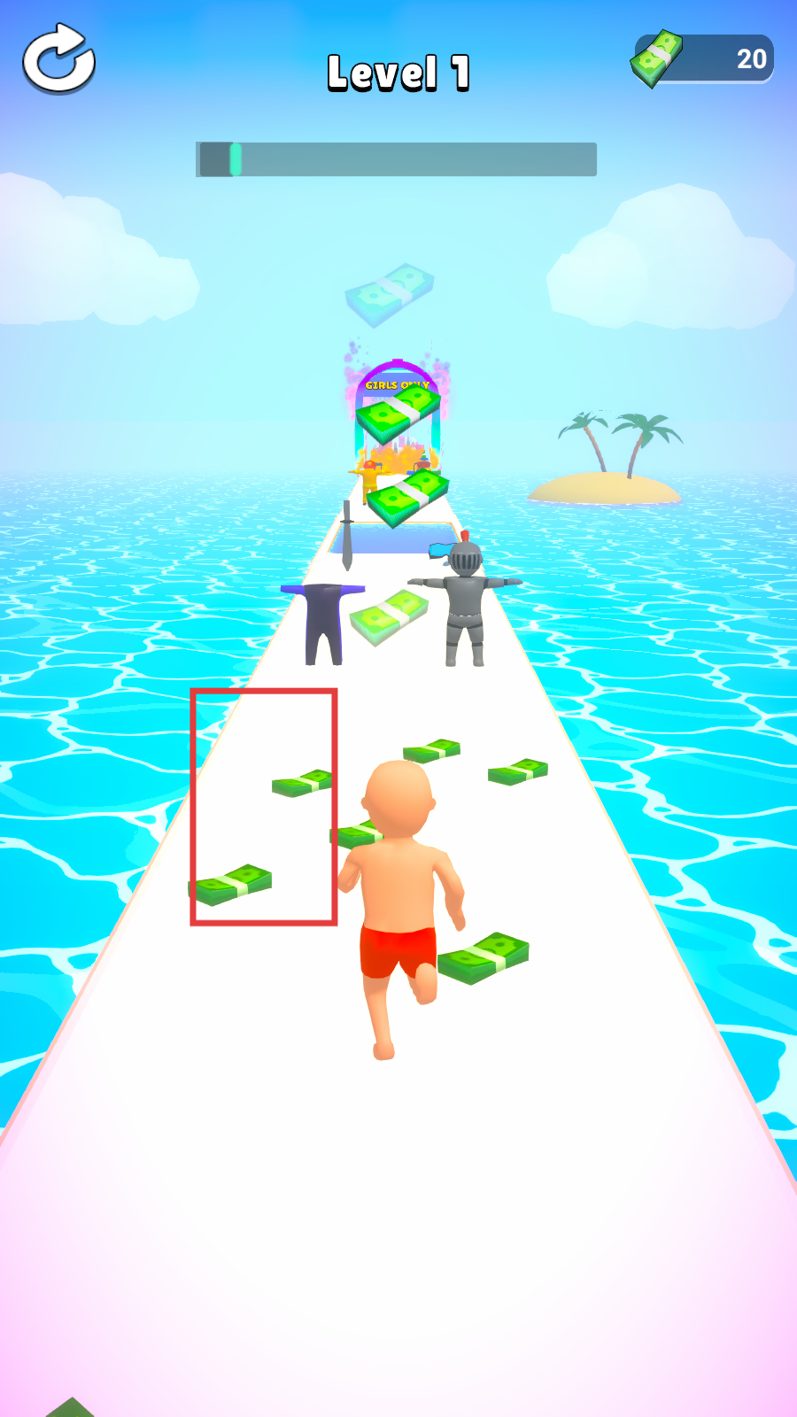 2、在跑道上收集绿色钞票,同时避开障碍物。