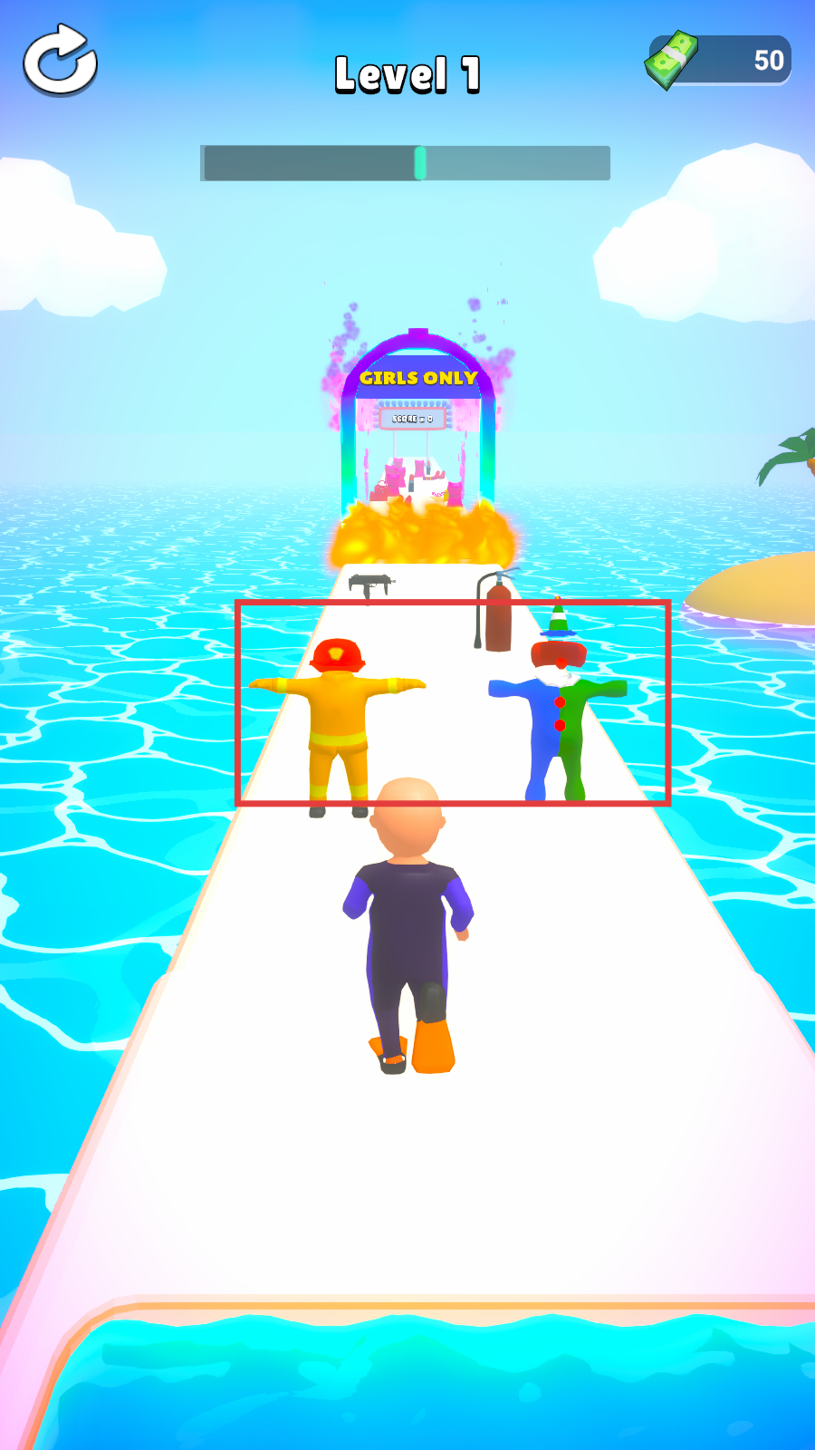 3、遇到不同角色服装时,根据情况选择,继续前进。