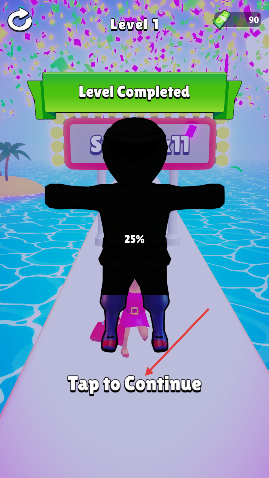 4、关卡完成后,点击【Taptocontinue】,进入下一个环节。