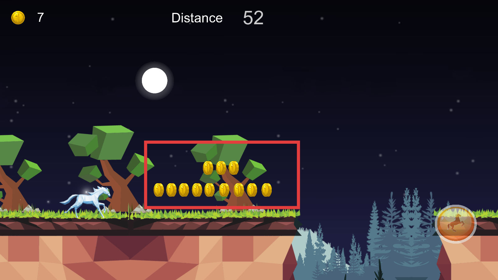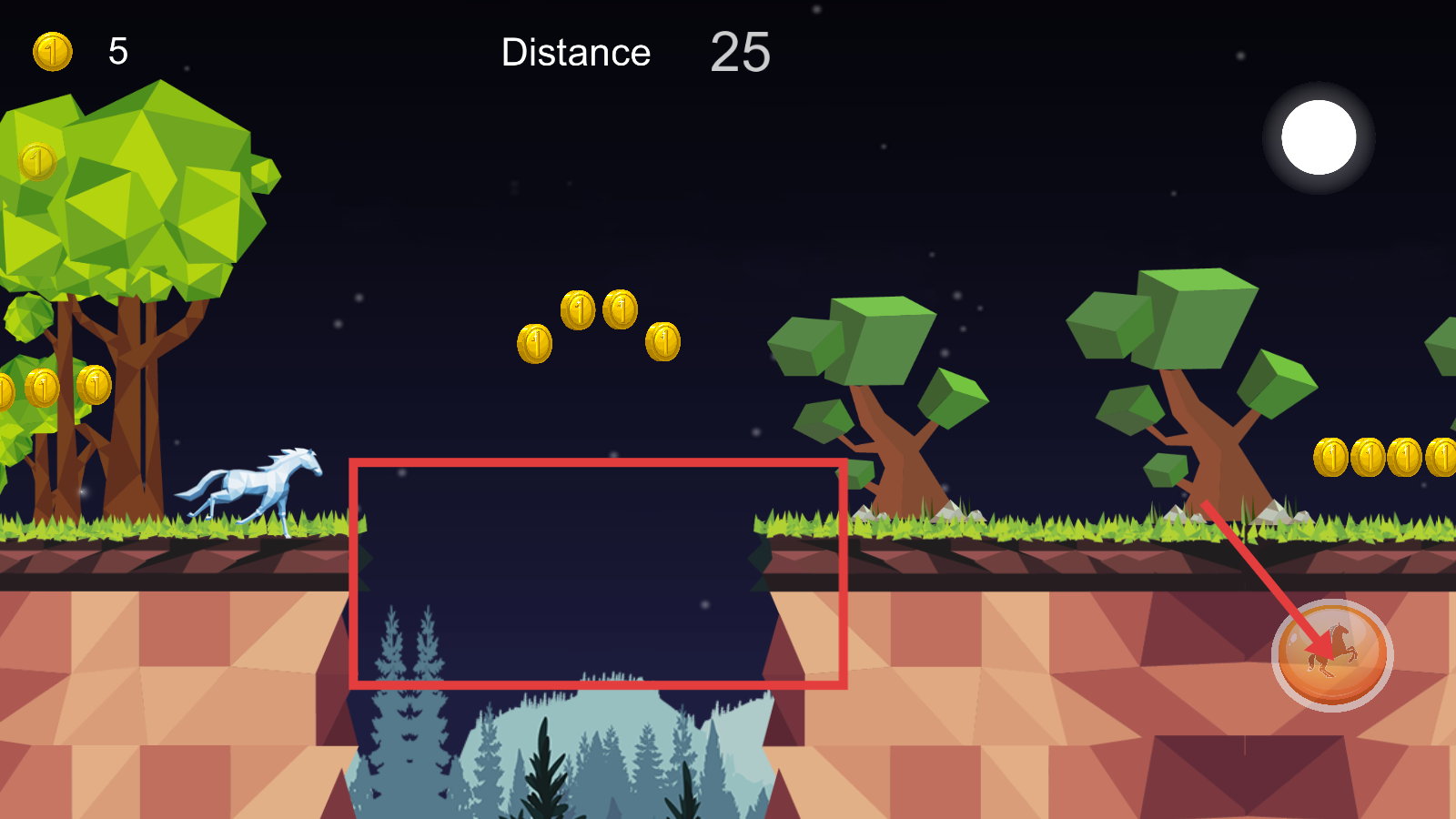 2、在游戏过程中,遇到悬崖等障碍时,点击右侧的马形按钮,让马跳跃过障碍。