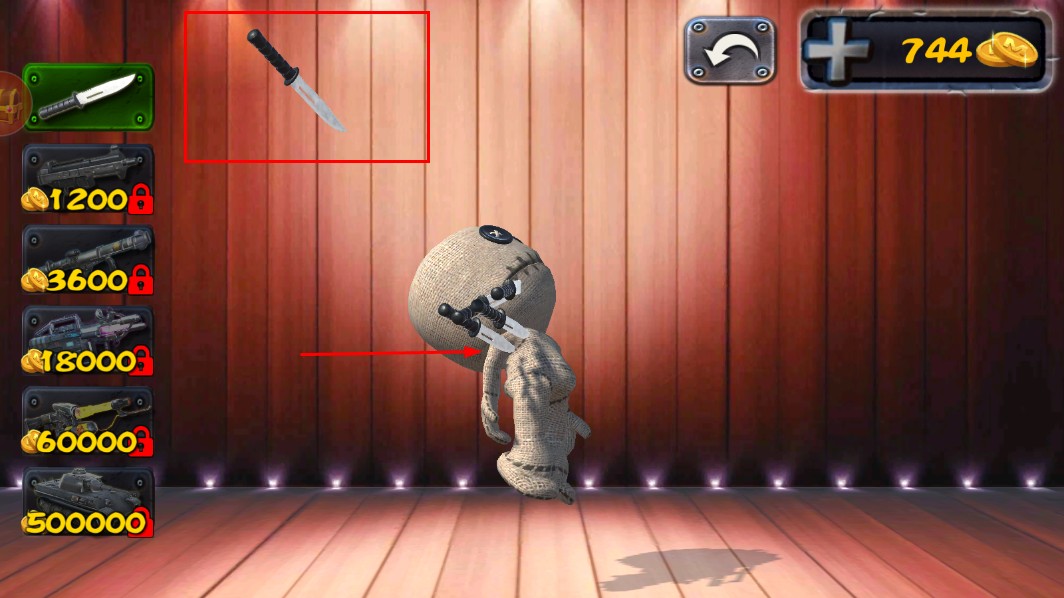 3、将选中的武器,如匕首,投向玩偶,对玩偶造成伤害。