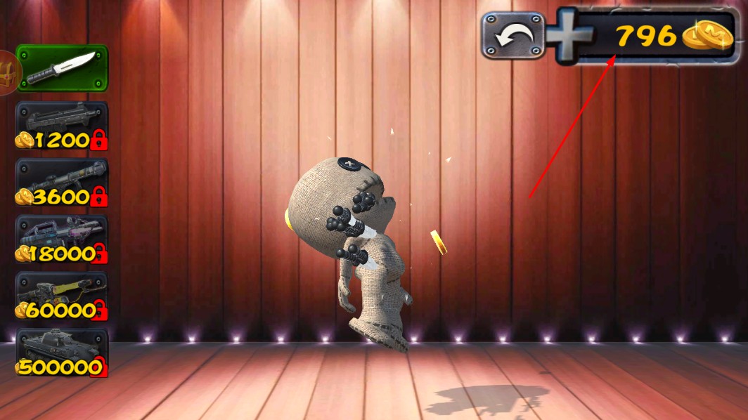 4、成功攻击玩偶后,可获得金币奖励,金币数量会显示在界面上方,可换取其他武器。