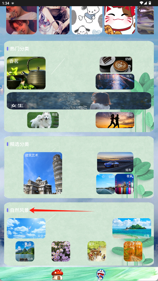 1、在首页界面选择"自然风景"或自己喜欢的进入。