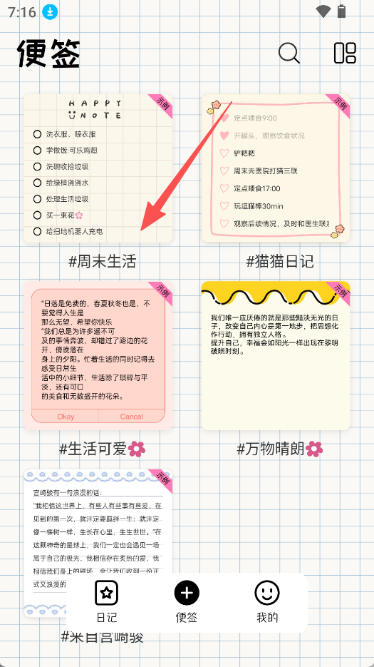 3、返回后点击便签,可查看或记录不同分类的便签。