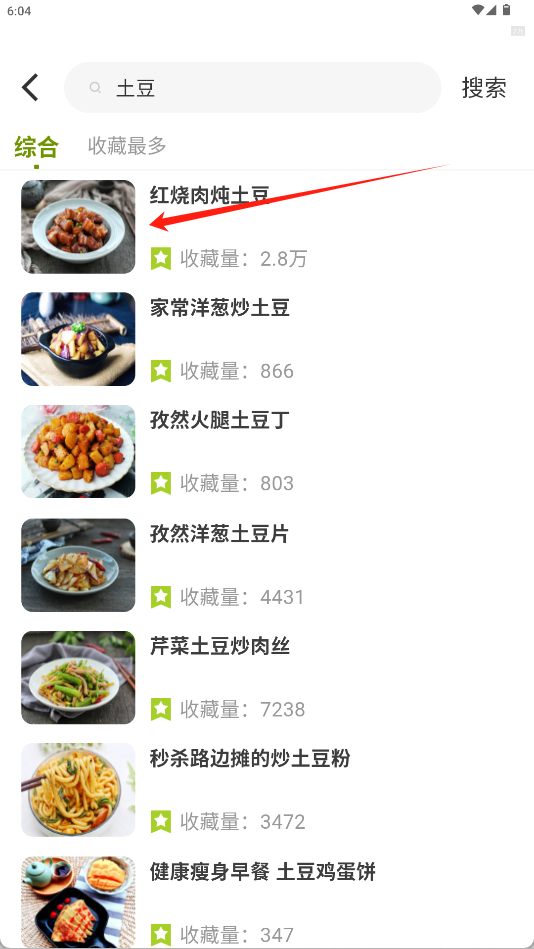 2、在搜索结果列表中找到目标菜谱“红烧肉炖土豆”,进入菜谱详情页面。