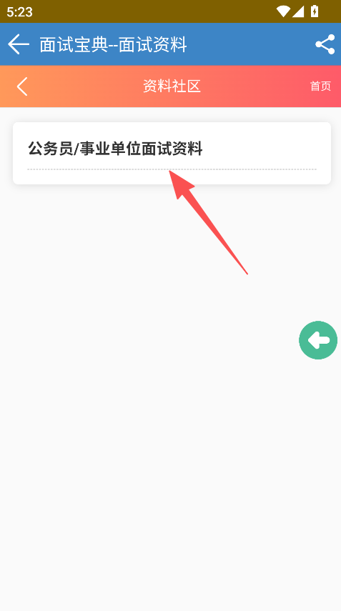 3、进入资料社区,选择公务员/事业单位面试资料,查看专项内容。
