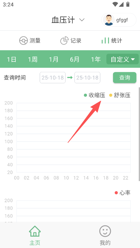 3、查看统计图表,了解收缩压、舒张压等数据。