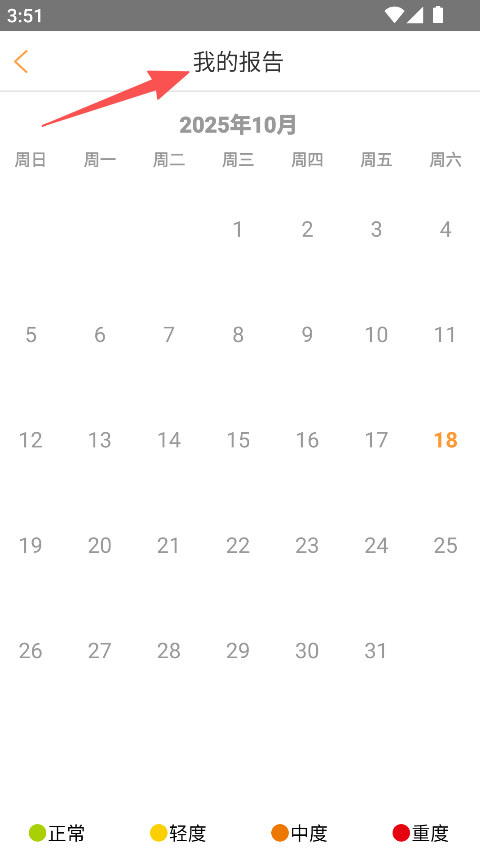 2、我的报告功能以日历形式呈现,不同日期健康状况直观可查,呈现方式清晰。