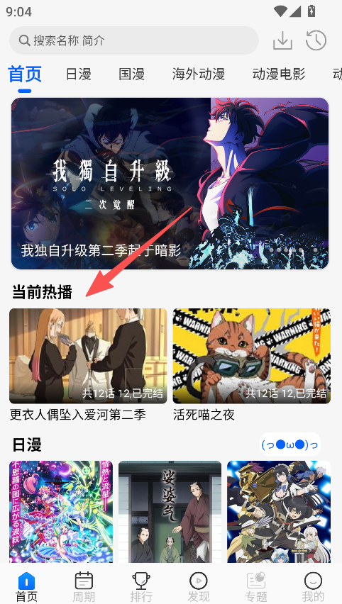 2、设有当前热播板块,展示《更衣人偶坠入爱河第二季》等热门动漫,让用户快速知晓并追看热门内容。