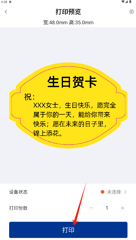 3、进入打印预览界面确认模板内容与尺寸,点击底部“打印”按钮完成操作。
