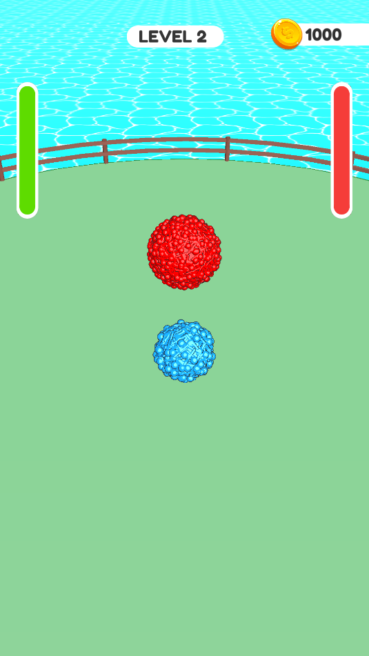 3、滑动屏幕移动自己的人肉球撞击红色人肉球,把红色人肉球撞散架即可通关。