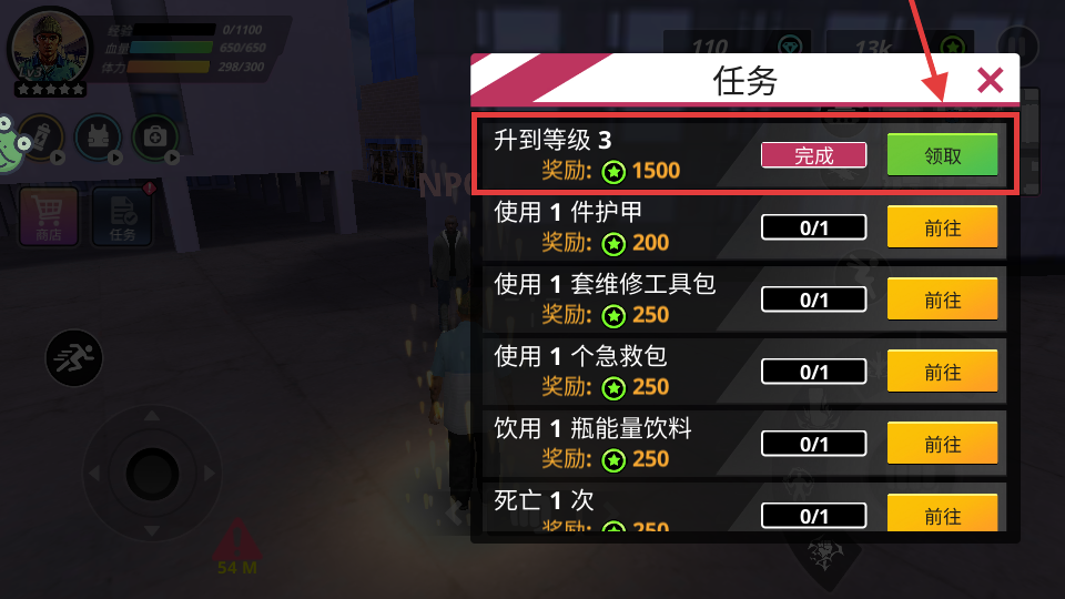3、完成任务后点击【领取】,获取奖励用于养成强化、改造武器,提升作战能力。