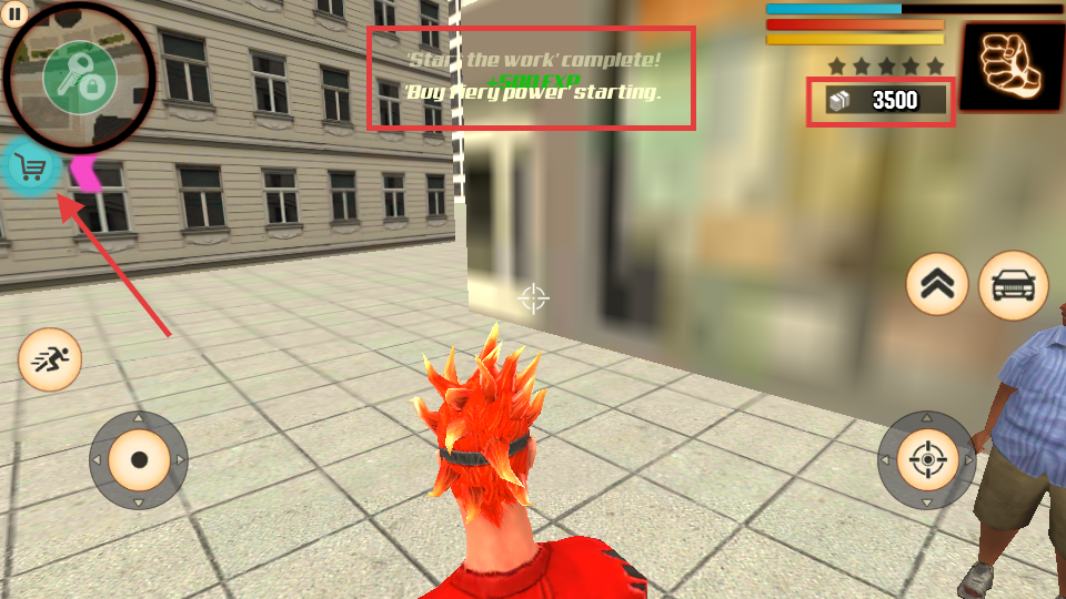 2、任务完成后获取经验与货币,点击【购物车】图标进入商店,利用资源升级或购买装备。