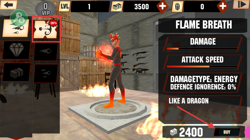 3、商店中【FLAMEBREATH】技能强力,2400货币且有折扣,优先购买提升战斗输出能力。
