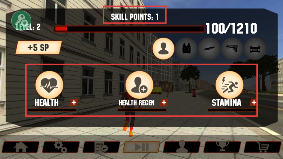 4、升级后获1技能点,优先分配到【HEALTH】【HEALTHREGEN】【STAMINA】,增强生存续航。