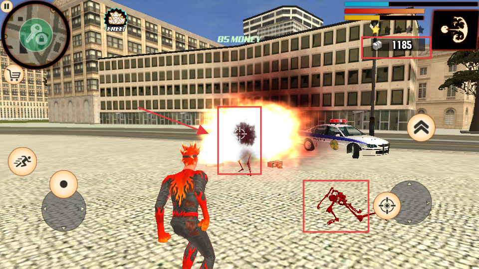 3、通过攻击触发爆炸消灭敌人,击败后获得金钱奖励(如【1185】),同时清理战场收集战利品。