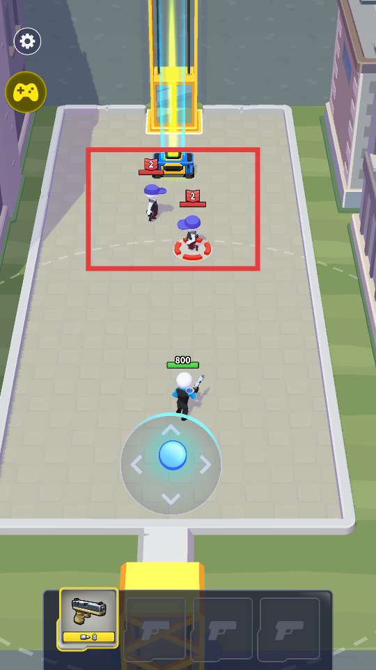 2、关注红框内的敌人和载具,优先消灭带有等级标识的敌人,逐步推进关卡。
