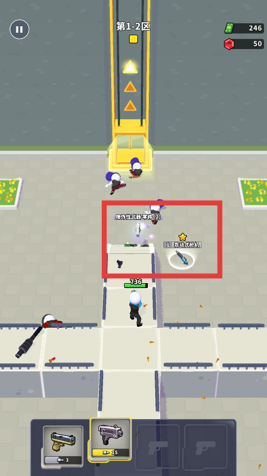 3、留意红框内的武器掉落,及时拾取强力武器如【标美式枪机】,提升自身战斗能力。