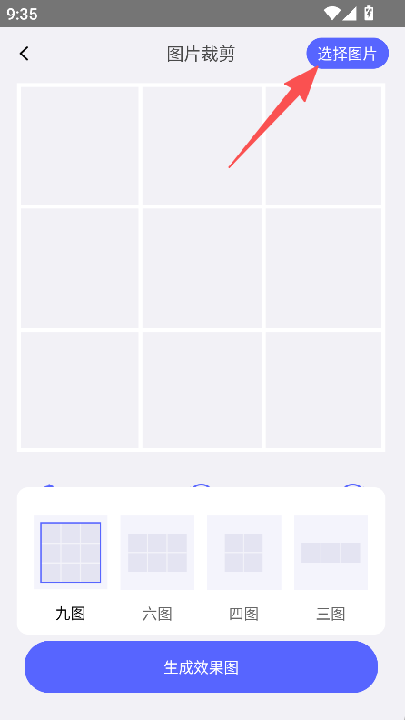 1、进入图片剪裁板块,点击选择图片,选择多图样式,生成效果图。