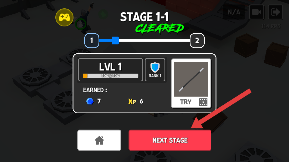 4、关卡通关后点击【NEXT-STAGE】按钮,进入下一个关卡,继续挑战并获取经验和资源奖励。