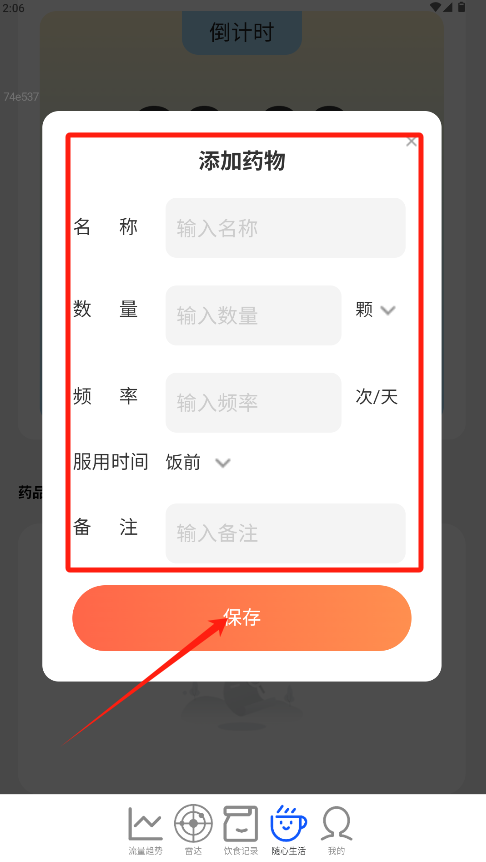 3、进入页面添加药物名称、数量等信息进行保存即可。