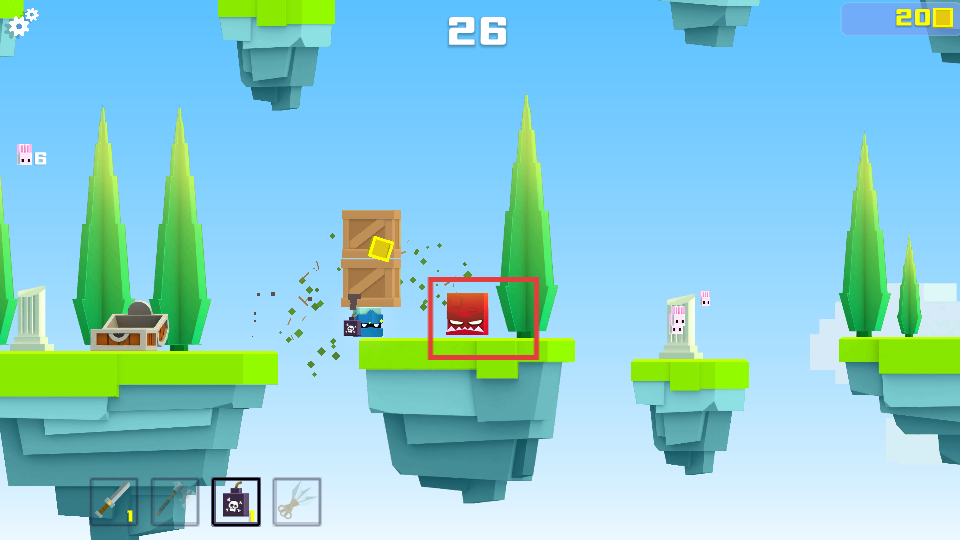 2、遇到红色兽人时,使用道具击败它,同时留意周围的箱子。