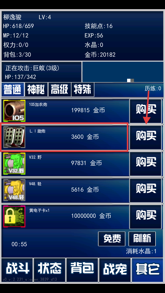 3、在商店点击【购买】【L-I旋炮】等武器,消耗金币提升战车战力,助力任务挑战。