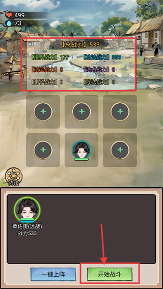 3、查看总战力【533】及各分项,布阵后点击【开始战斗】,参与战斗推进。