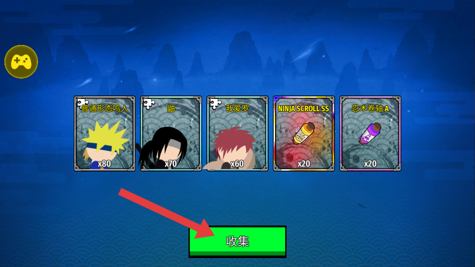 4、领取所有奖励后点击【收集】,获取角色碎片、忍术卷轴等资源,积累金币和紫晶,实现资源的无限获取和积累。