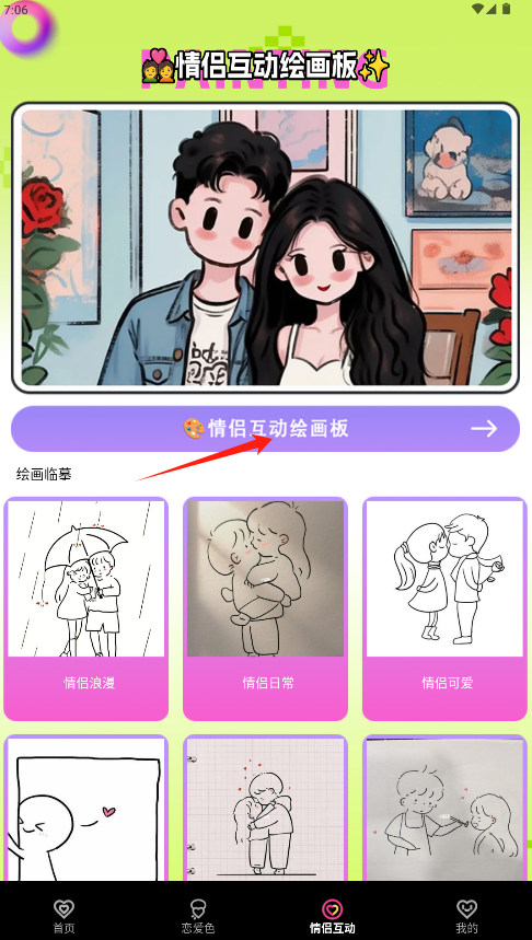 2、进入页面后选择“情侣互动绘画板”功能,进入绘画板界面。