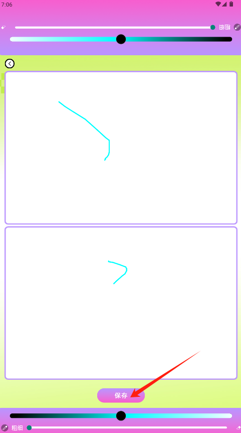 3、在绘画板中使用颜色与粗细工具完成临摹创作,最后点“保存”按钮。