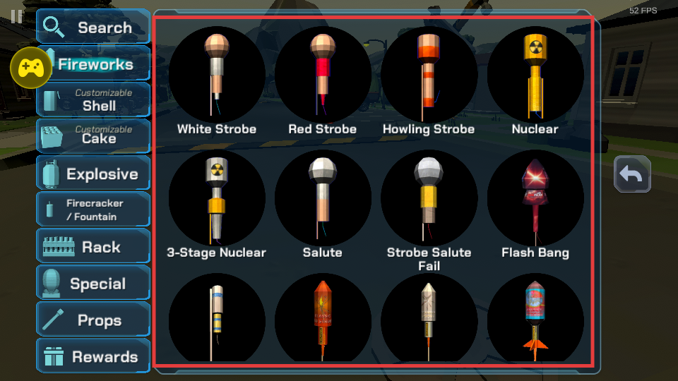 2、在功能菜单【Fireworks】分类中,有【White-Strobe】、【Red-Strobe】等多种烟花可选,根据需求挑选来打造不同烟花效果。